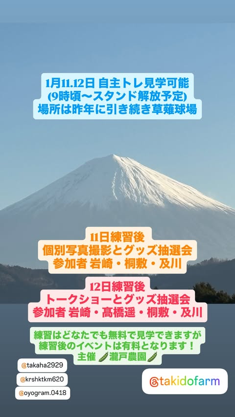 以下、2025年1月12日、静岡・草薙球場でのチームZAKI(岩崎)の自主トレをレポートしますので、2現地へ行く予定の方の参考になれば嬉しいです。